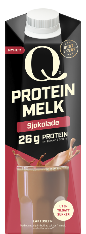 Q Proteinmelk Sjokolade har et høyt proteininnhold og en skikkelig god sjokoladesmak. I en blindtest slo den knockout på konkurrentene og ble kåret til best i test*!